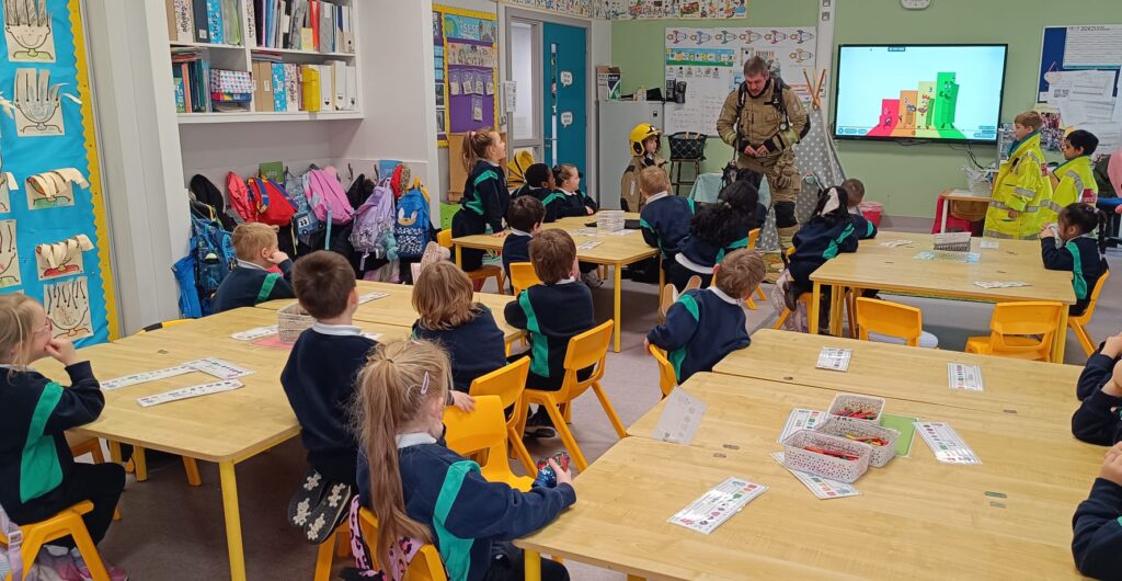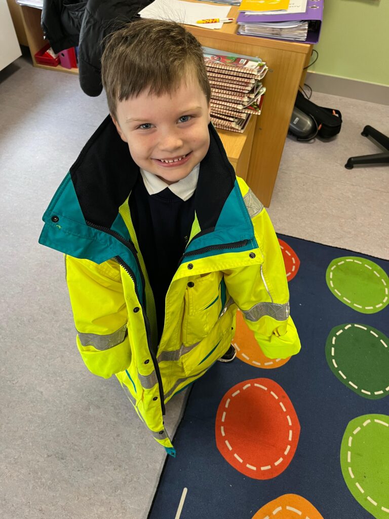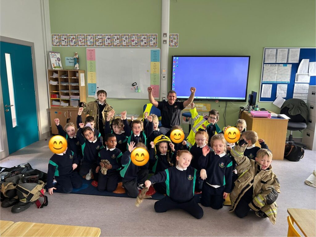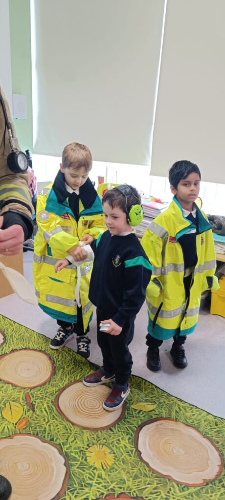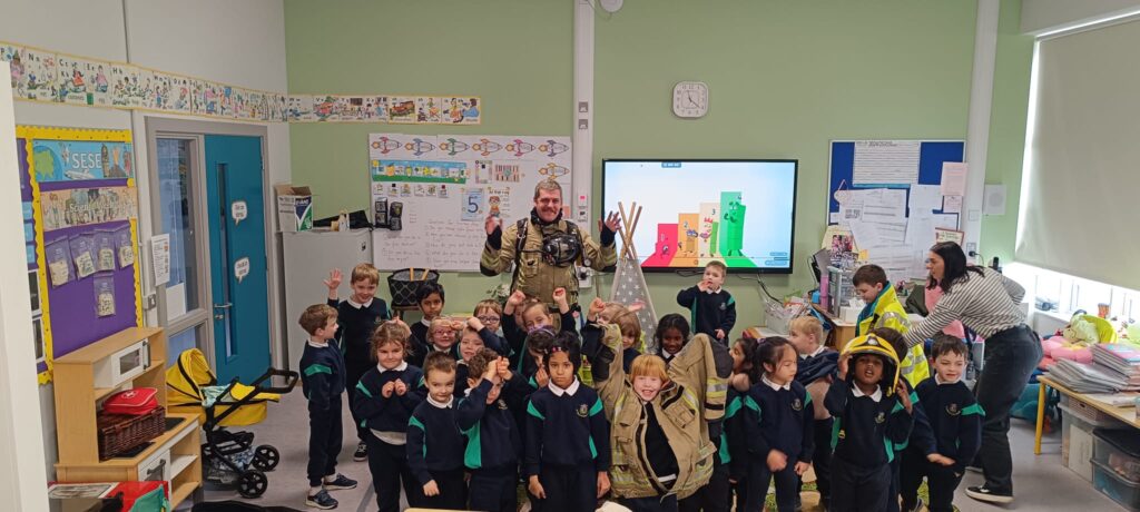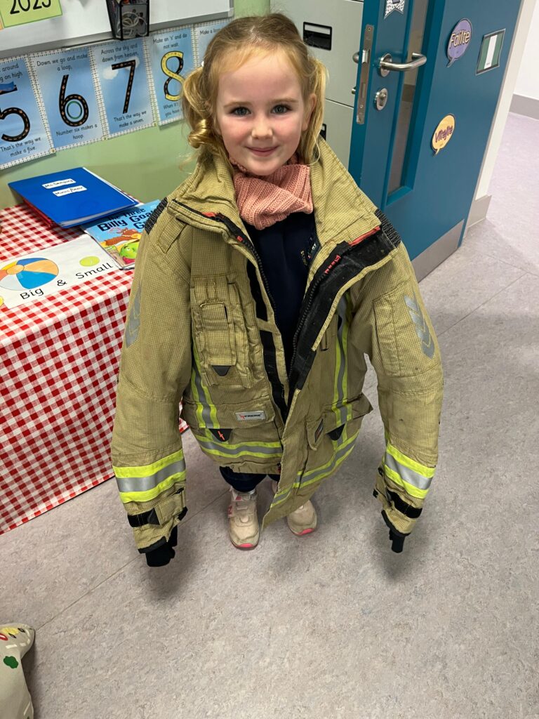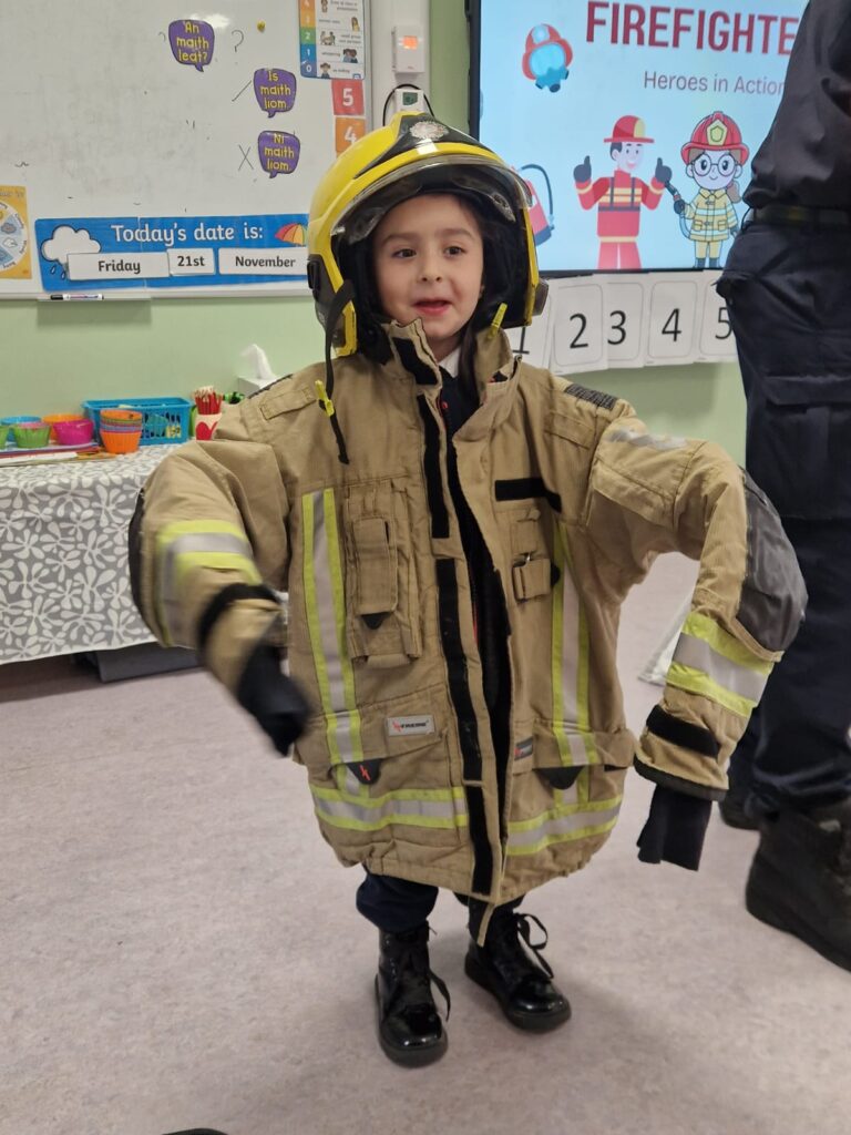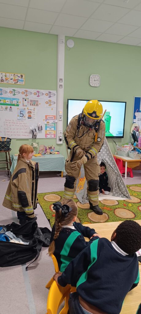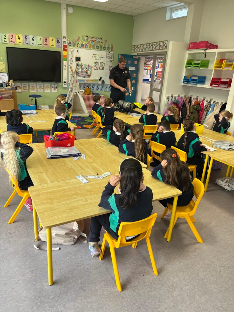 The boys and girls in Junior Infants were very excited to welcome firefighter/paramedic Alex from Dublin Fire Brigade who visited us last week. He showed us the equipment paramedics and fire fighters use, taught us how to call 999 and how to test our smoke alarm.