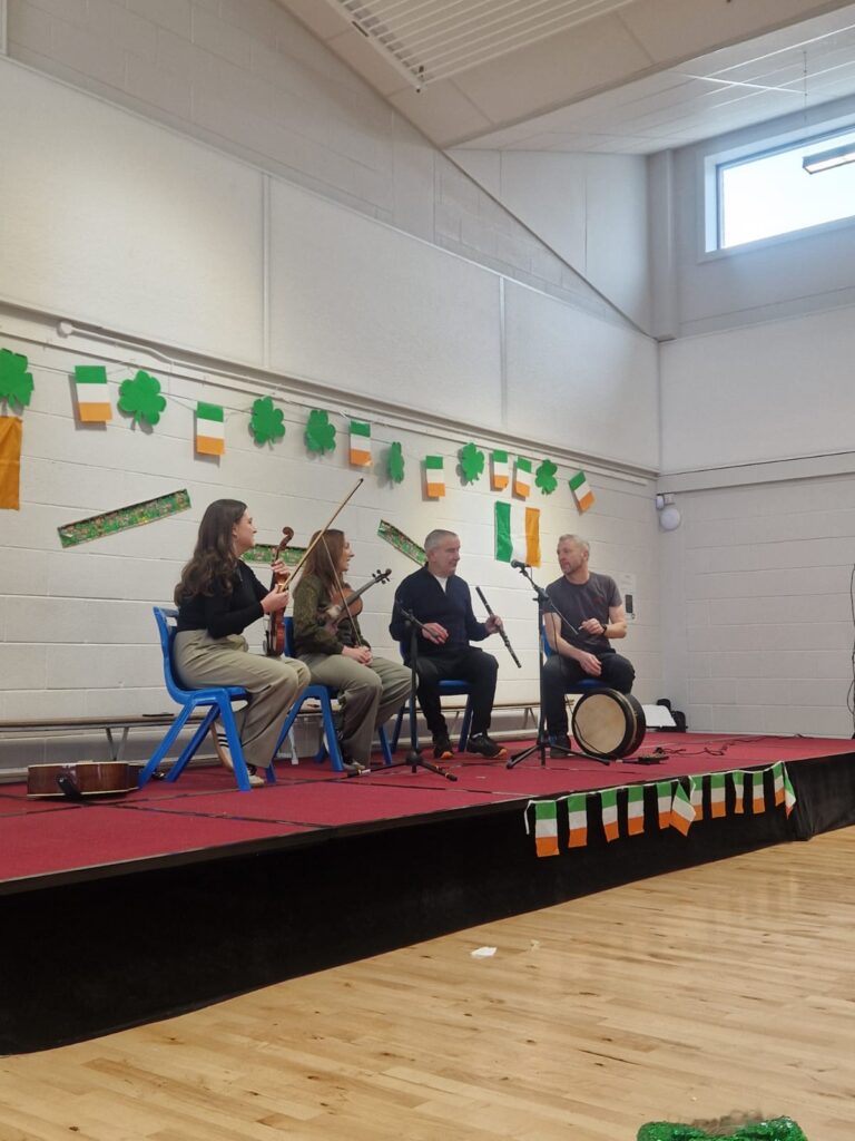 On Friday morning the 13th March we were so lucky to have Ms Aoise Dempsey and her sister Eimear accompanied by Joe and Larry to play some jigs and reels for us all to enjoy. Larry also treated us to a lovely song he composed all about St Patrick.