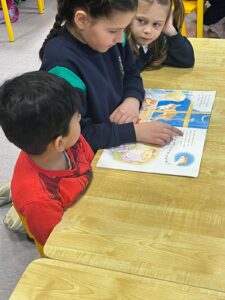 First class were very lucky to have the Senior pupils from St. Conleth’s and Marys come over and read with them. They really enjoyed this experience, and it was very beneficial for all.